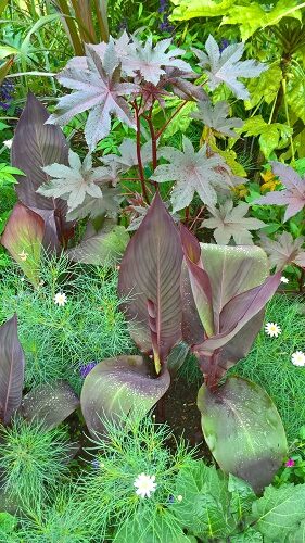 In July through to September, the herbaceous border is in full glory, with the tall Delphiniums in full show, and later the September Asters are at their peak, and this is also Michaelmas Daisy season, and the changing colour scheme continues with a change towards varieties of green.